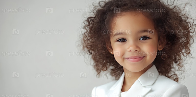 Маленький ребенок в изысканном белом костюме излучает очарование и уверенность