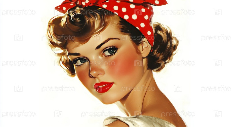 Винтажная иллюстрация женщины с красным платком в горошек