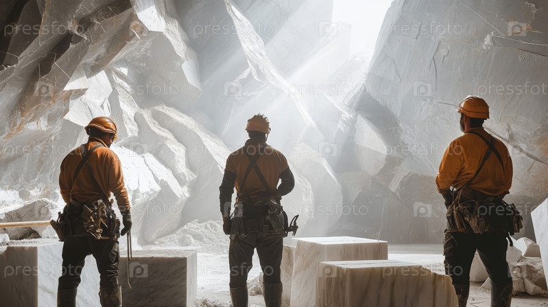 Откройте для себя красоту и первозданную силу природы с помощью этого потрясающего изображения, запечатлевшего добычу белого мрамора в карьере, освещенном золотистым светом восхода солнца