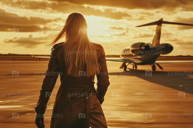 Ощутите очарование роскошного путешествия на закате, демонстрируя модную элегантность и обещание новых приключений как в небе, так и за его пределами