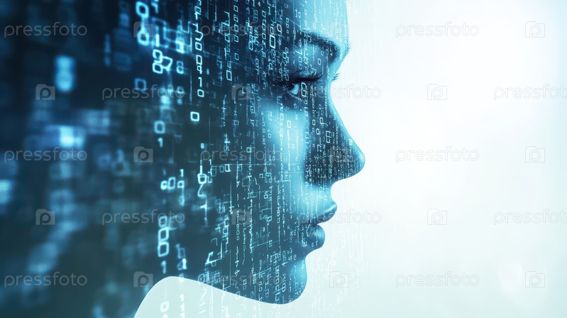 Лицо женщины с цифровым бинарным наложением