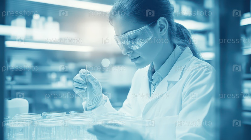 Женщина-ученый проводит эксперимент в современной лаборатории
