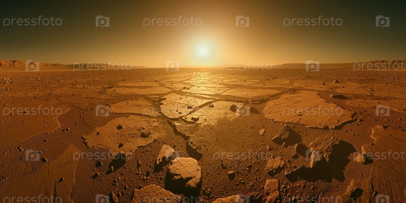 Реалистичный ландшафт планеты Марс, вид с поверхности большого кратера