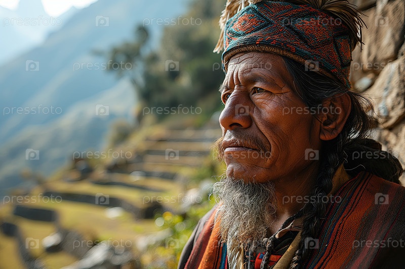 Пожилой перуанский житель деревни в национальной одежде