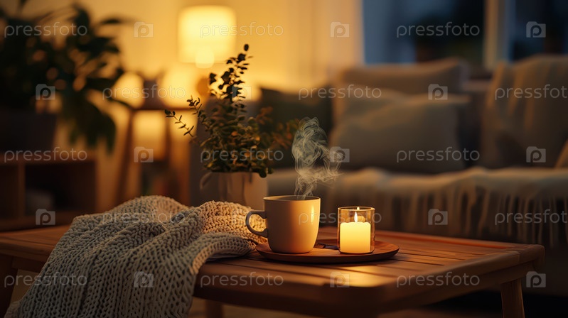 Уютный вечер со свечой и горячим чаем