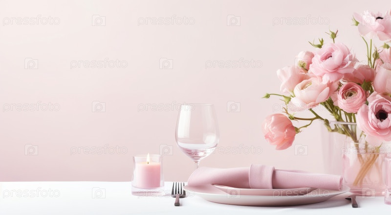 Романтическое торжество с красиво накрытым столом, бокалами для вина и подарочными украшениями. Любовь в каждой детали