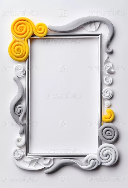 Эта художественная прямоугольная рамка демонстрирует сочетание декоративных завитков белого, серебристого, серого и желтого цветов, создавая поразительный визуальный эффект на нейтральном фоне
