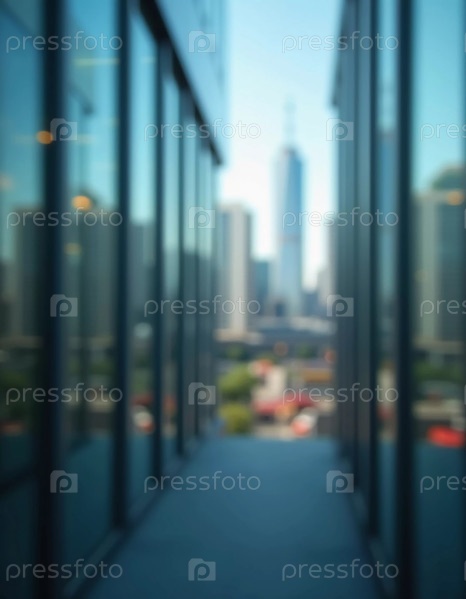 Размытая перспектива демонстрирует современный городской горизонт через стеклянную стену в сумерках, раскрывая яркость и сложность городской жизни. Угасающий свет отражает городскую энергию. Генеративный ИИ
