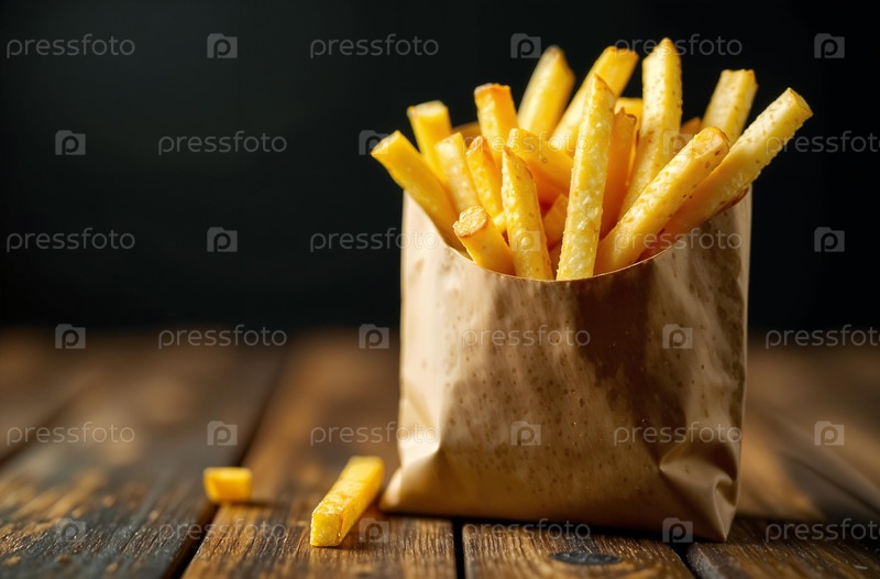 Картофель фри на темном фоне, фото еды для меню ресторана. Генеративный искусственный интеллект
