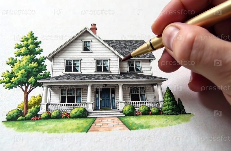 Возьмите кисть и нарисуйте дом, художественный инструмент для любителей рисования. Генеративный искусственный интеллект