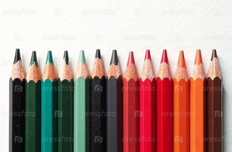 Карандаши лежат на белой бумаге, художественный инструмент для хобби рисования. Генеративный искусственный интеллект