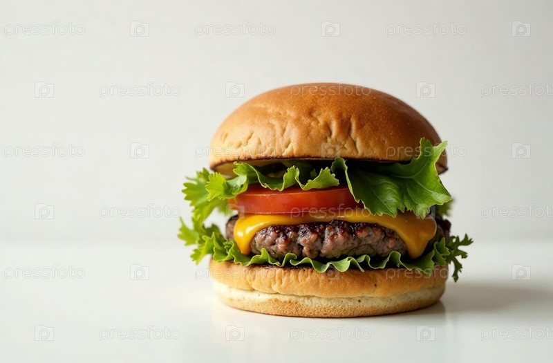 Сочная котлета бургера на светлом фоне. Еда для меню ресторана. Генеративный ИИ