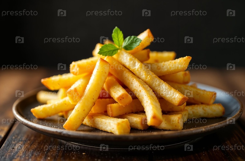 Картофель фри на темном фоне, фото еды для меню ресторана. Генеративный искусственный интеллект