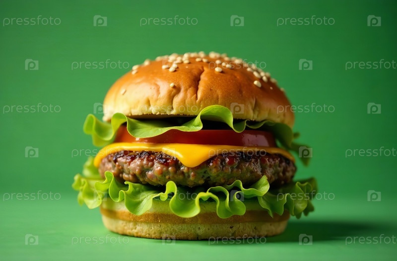 Сочная котлета бургера на зеленом фоне. Еда для меню ресторана. Генеративный ИИ