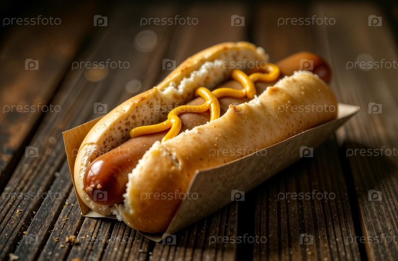 Сочная сосиска для хот-дога на темном фоне. Еда для меню ресторана. Генеративный ИИ