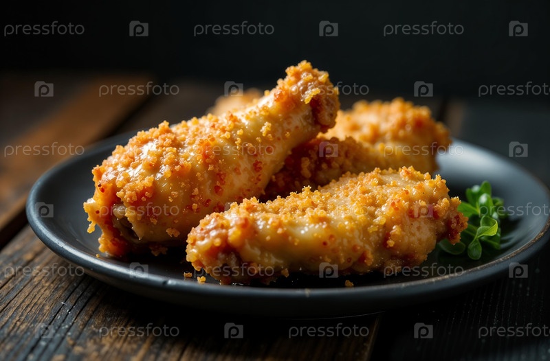Куриные крылышки на темном фоне, фото меню ресторана. Генеративный искусственный интеллект