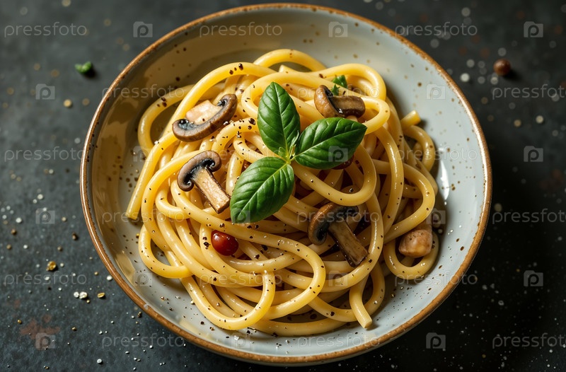 Итальянская паста на темном фоне, фото еды для меню ресторана. Генеративный ИИ