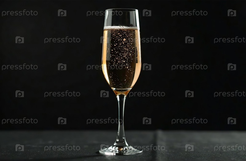 Бокал шампанского на темном фоне. Фото напитка бар ресторан. Генеративный искусственный интеллект