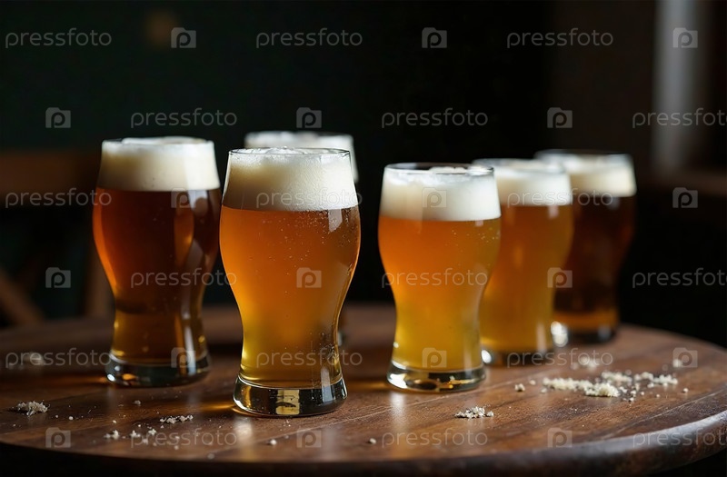 Стеклянная кружка пива на темном фоне. Фото напитка бар ресторан. Генеративный искусственный интеллект