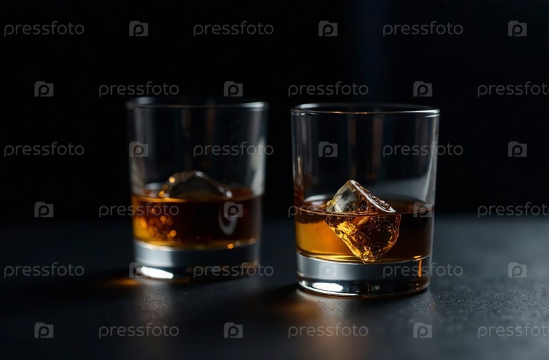 Стакан виски на темном фоне. Фото напитка бар ресторан. Генеративный искусственный интеллект