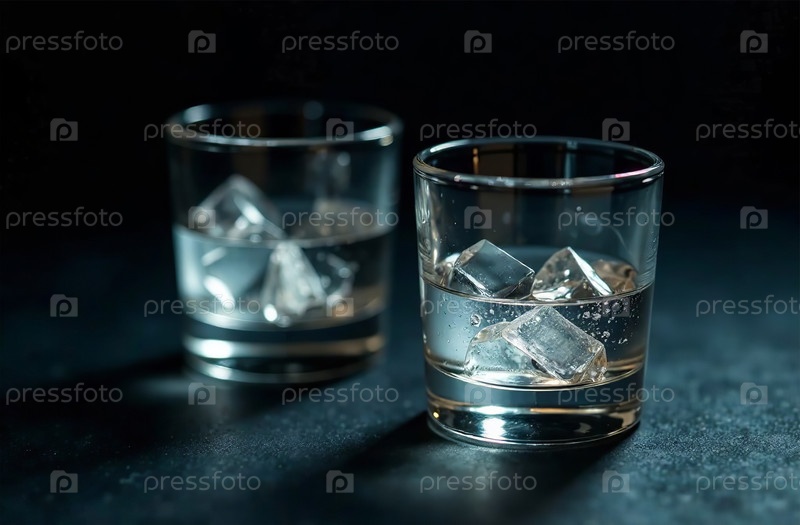 Стакан водки на темном фоне. Фото напитка бар ресторан. Генеративный искусственный интеллект