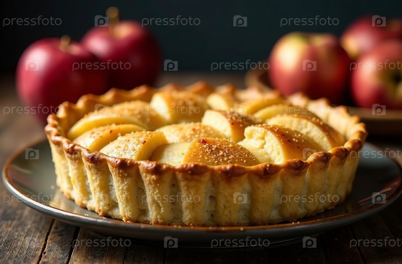 Яблочный пирог из цельных фруктов, фотография десерта для пекарни-ресторана. Генеративный искусственный интеллект