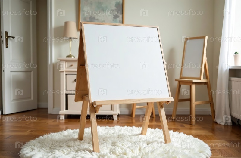 Доска для рисования игрушек в игровой комнате, белый ковер в детской комнате. Генеративный искусственный интеллект