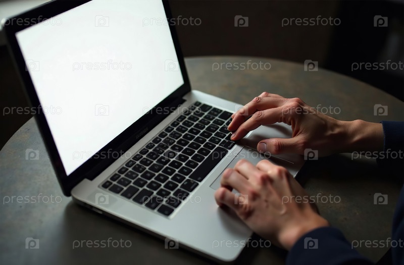 Человек-работник Работа на ноутбуке в офисе, удаленная работа на ноутбуке. Генеративный искусственный интеллект