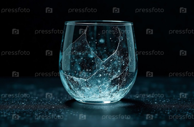 Стеклянная кружка с холодной чистой прозрачной водой на черном фоне льда. Генеративный искусственный интеллект
