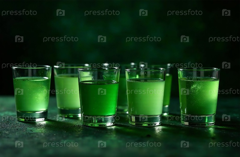 Стакан абсента темный фон. Фото напитка бар ресторан. Генеративный искусственный интеллект