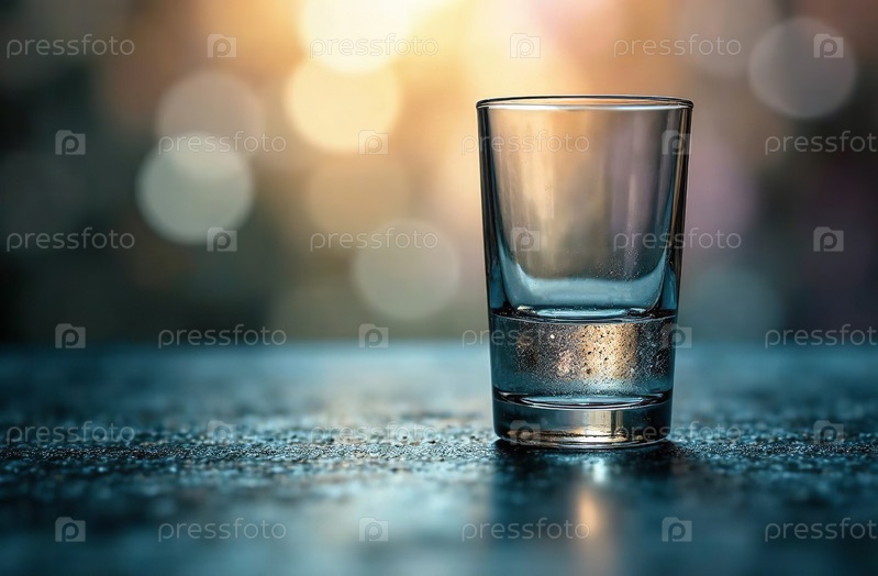 Стеклянная кружка с холодной чистой прозрачной водой на черном фоне льда. Генеративный искусственный интеллект
