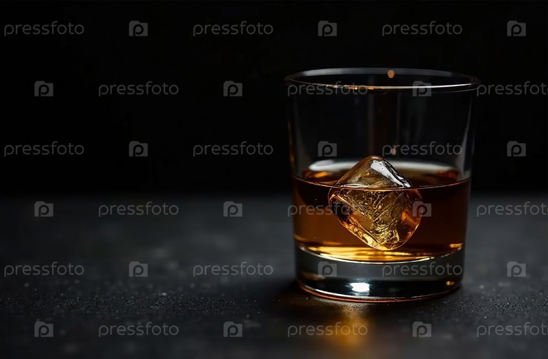 Стакан виски на темном фоне. Фото напитка бар ресторан. Генеративный искусственный интеллект