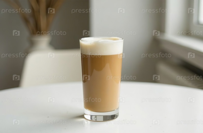Стеклянная кружка кофе на светлом фоне, напиток для меню ресторана. Генеративный искусственный интеллект