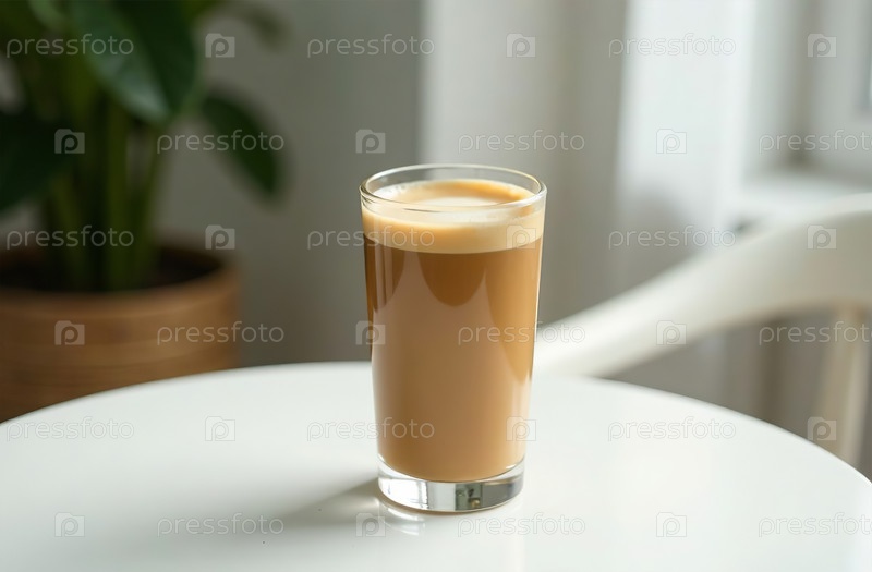 Стеклянная кружка кофе на светлом фоне, напиток для меню ресторана. Генеративный искусственный интеллект