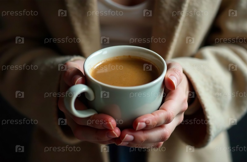 Стеклянная кружка кофе в руках женщины, напиток для меню ресторана. Генеративный искусственный интеллект
