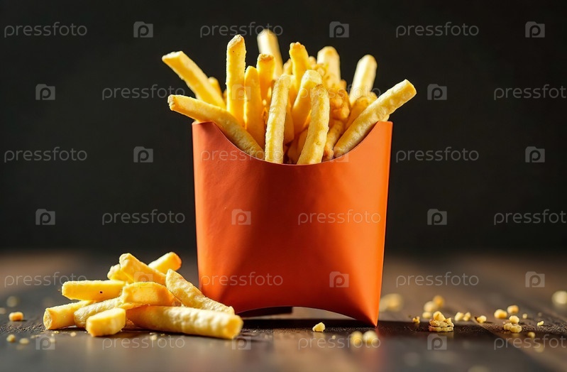 Картофель фри на темном фоне, фото еды для меню ресторана. Генеративный искусственный интеллект