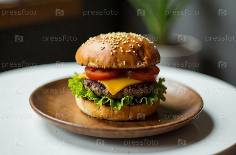 Сочная котлета бургера на светлом фоне. Еда для меню ресторана. Генеративный ИИ