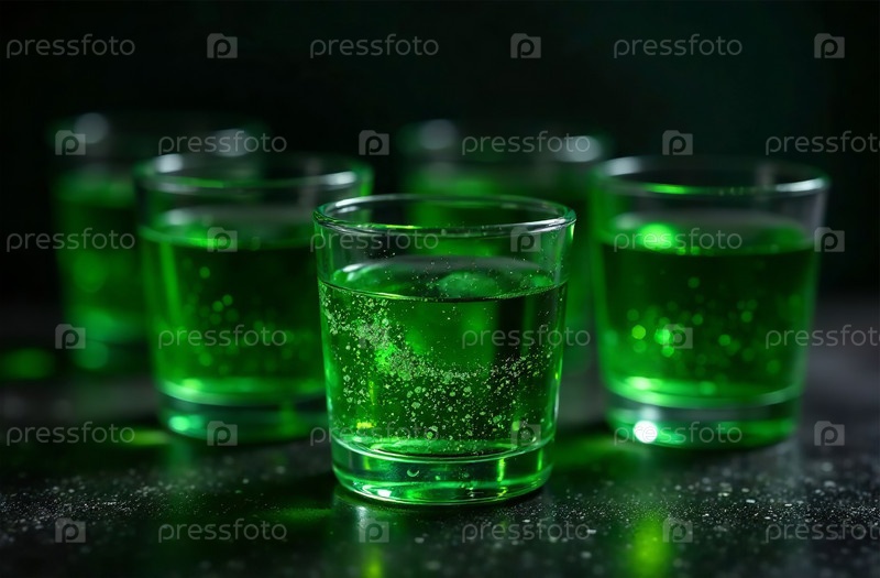 Стакан абсента темный фон. Фото напитка бар ресторан. Генеративный искусственный интеллект
