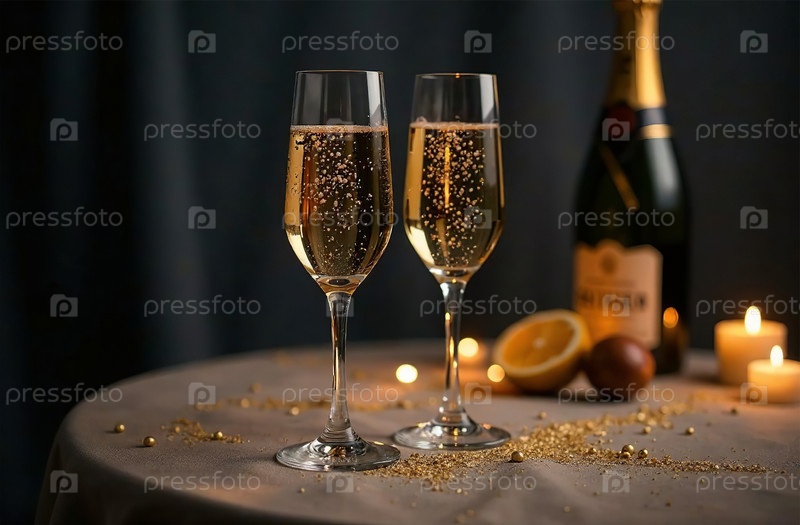 Бокал шампанского на темном фоне. Фото напитка бар ресторан. Генеративный искусственный интеллект