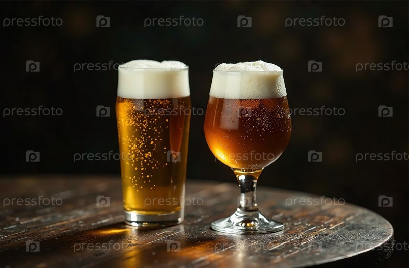 Стеклянная кружка пива на темном фоне. Фото напитка бар ресторан. Генеративный искусственный интеллект