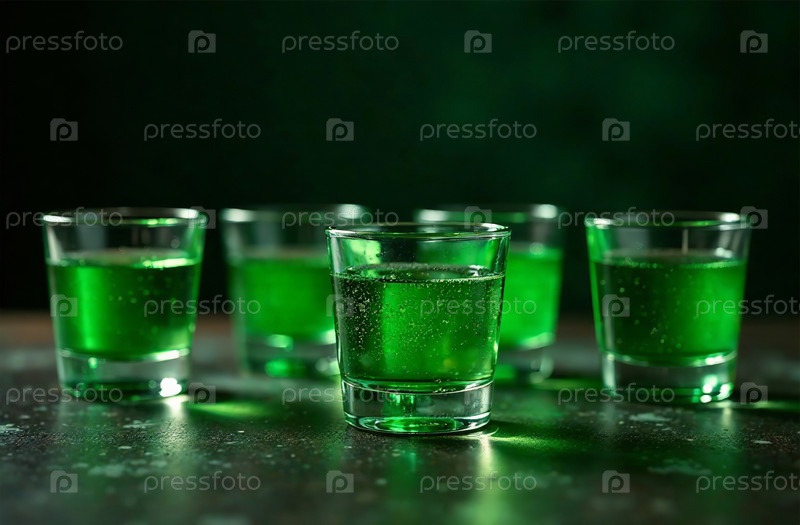 Стакан абсента темный фон. Фото напитка бар ресторан. Генеративный искусственный интеллект