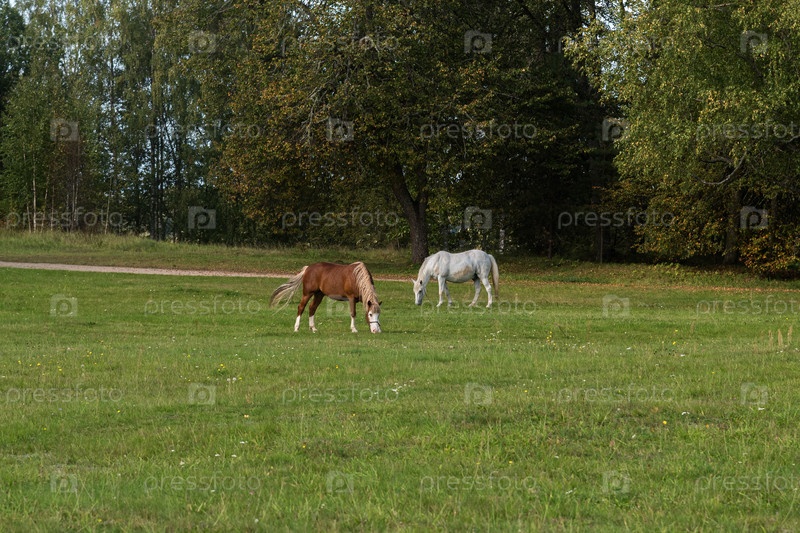 Лошади пасутся на лугу