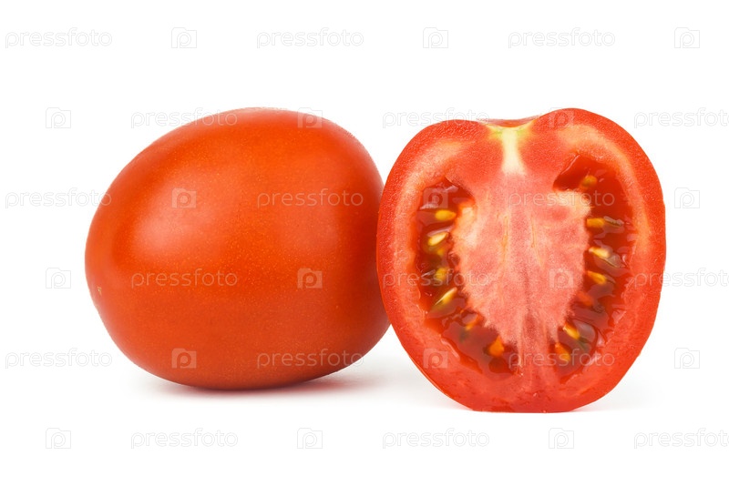 Изолированный помидор. Полтора свежих помидора изолированы на белом фоне