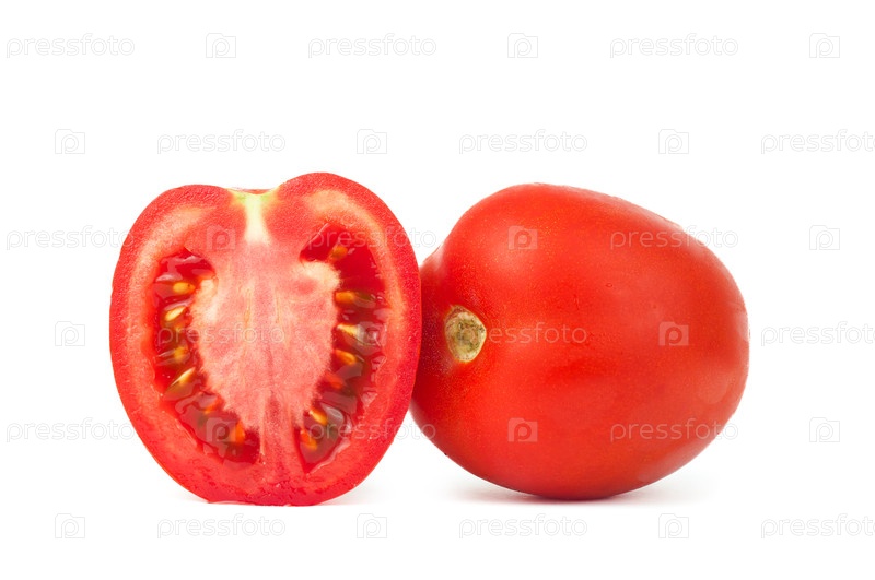 Изолированный помидор. Полтора свежих помидора изолированы на белом фоне