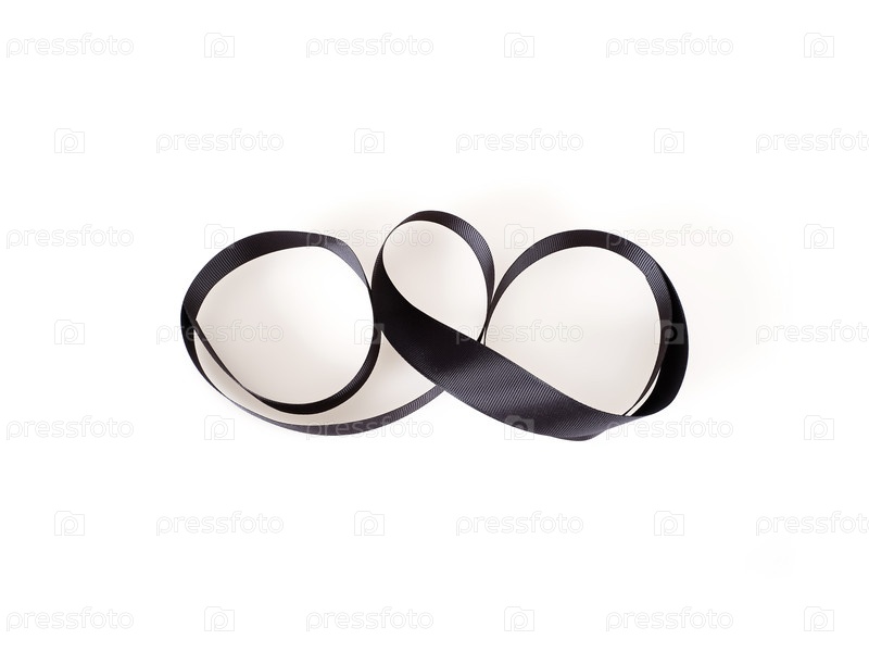Декоративная черная шелковая лента, изолированная на белом фоне. Элемент дизайна с обтравочным контуром