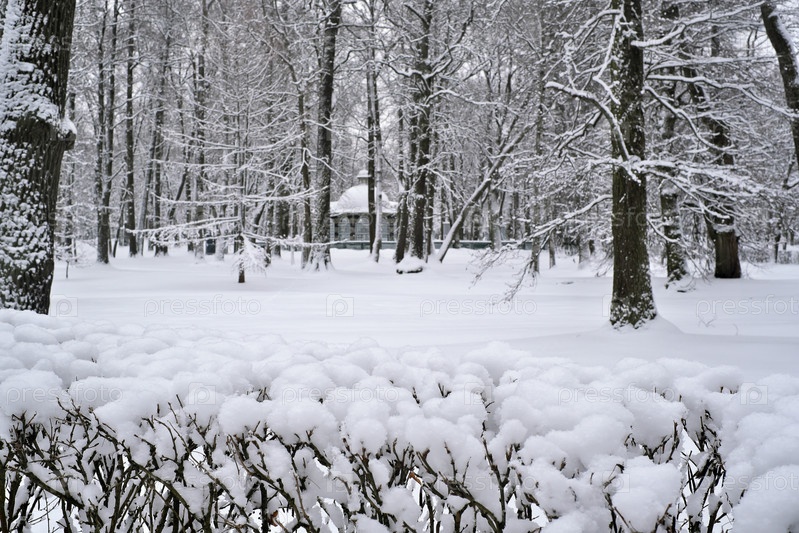 Зимний пейзаж в нижнем парке Петродворце (Петергоф, Санкт-Петергоф). Вид на западный вольер (птичник)