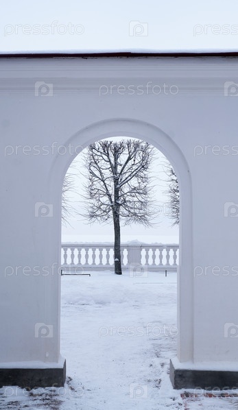 Вид на террасу и Финский залив из парка дворца Монплезир (Петергоф, Санкт-Петербург) зимой