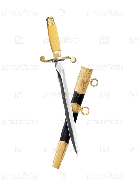 Ножны советского офицерского кортика, изолированные на белом фоне. Элемент дизайна с обтравочным контуром