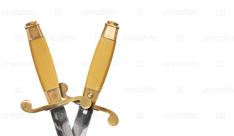 Два советских офицерских кортика изолированы на белом фоне. Элемент дизайна с обтравочным контуром