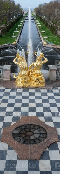 Нижний парк Петродворца, Большой каскад (Петергоф, Санкт-Петербург) в начале лета